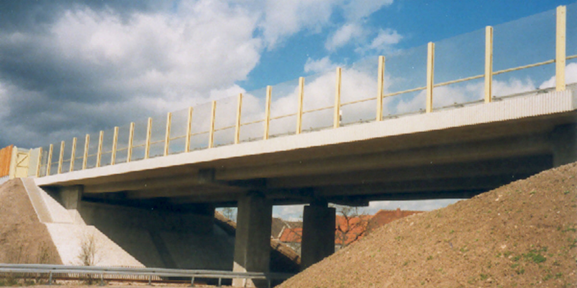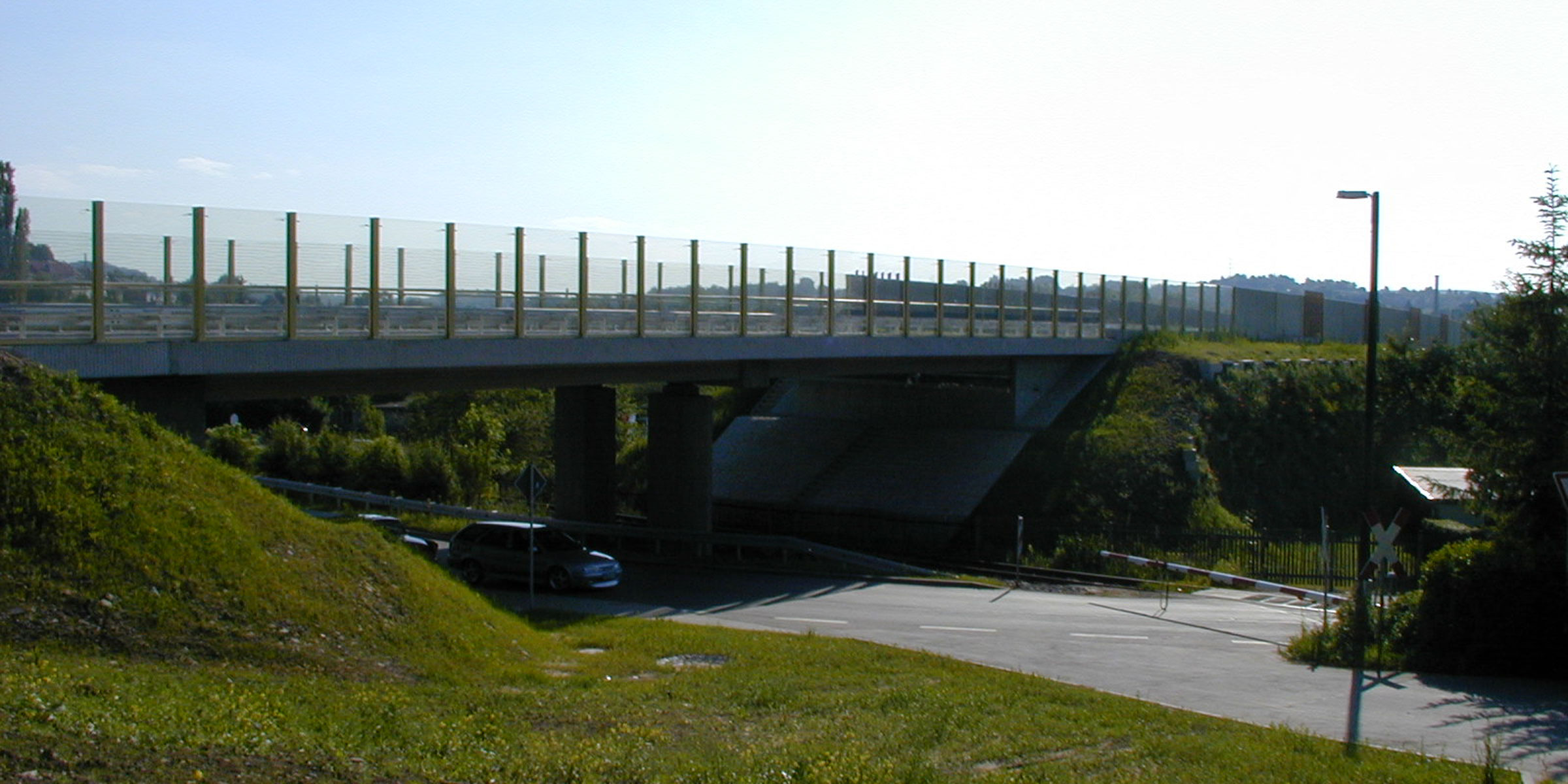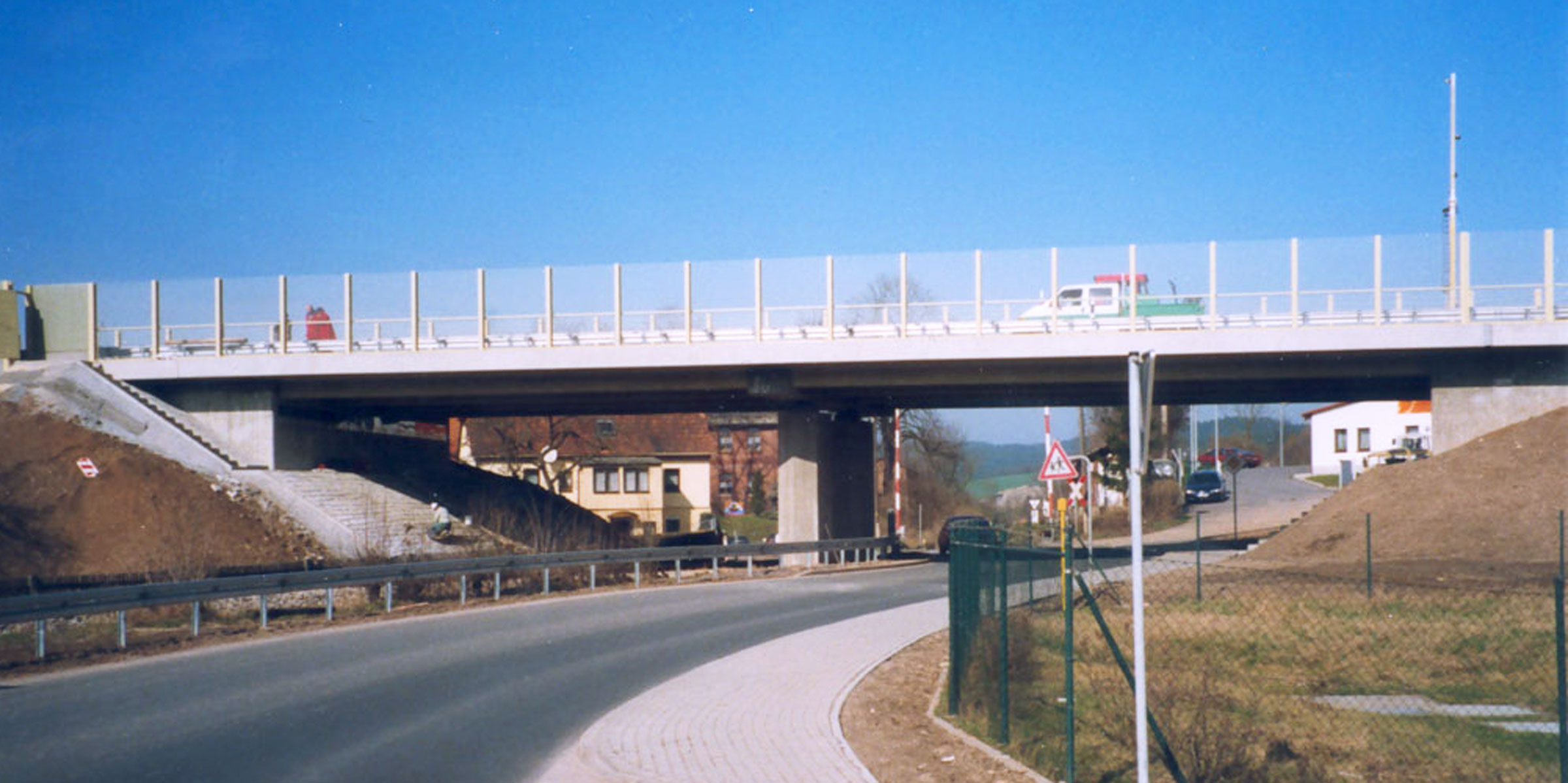 Brücke im Zuge der B281 über die Bahn und die Jenaer Straße bei Pößneck.