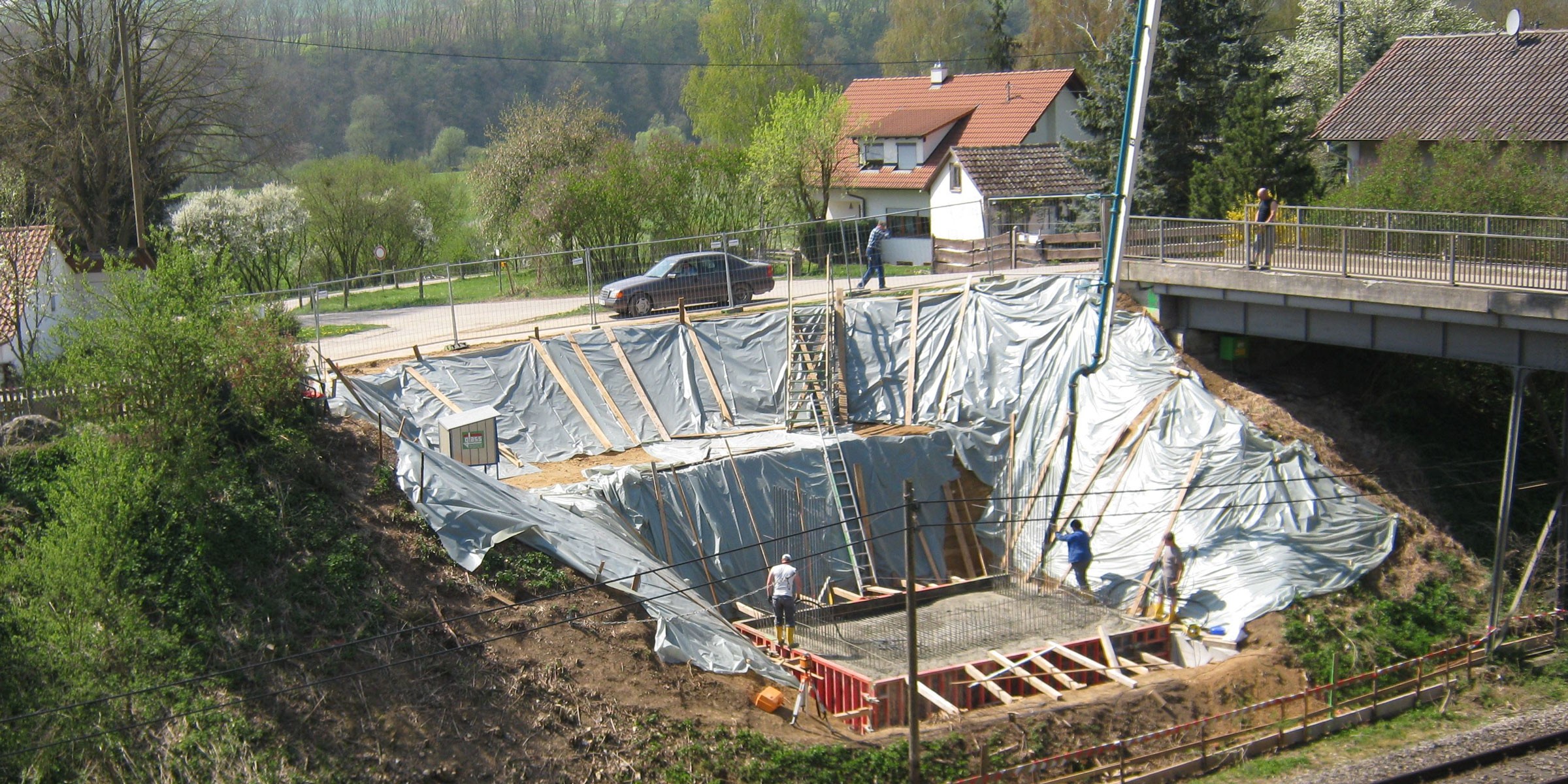 Neubau der Brücke über die Bahnlinie Ulm-Sigmaringen in Obermarchtal.
