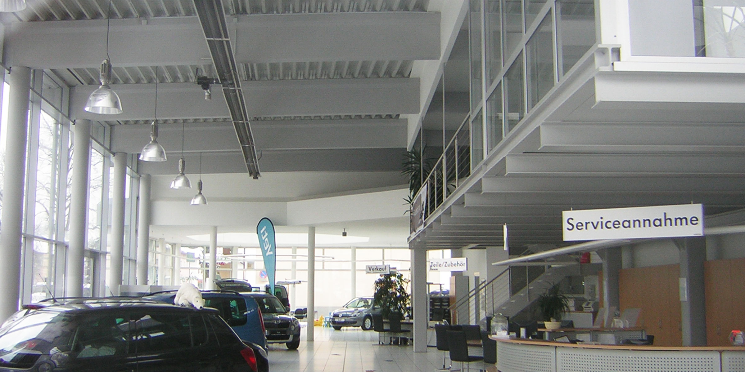 - Erweiterung der bestehenden Werkstatt in Massivbauweise mit Stahldachkonstruktion.