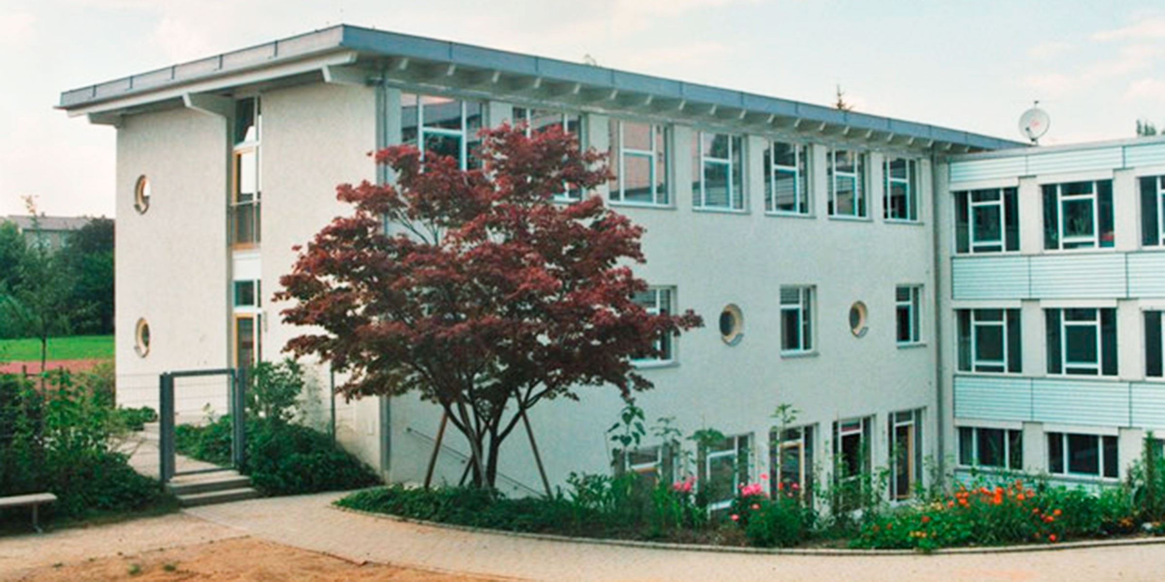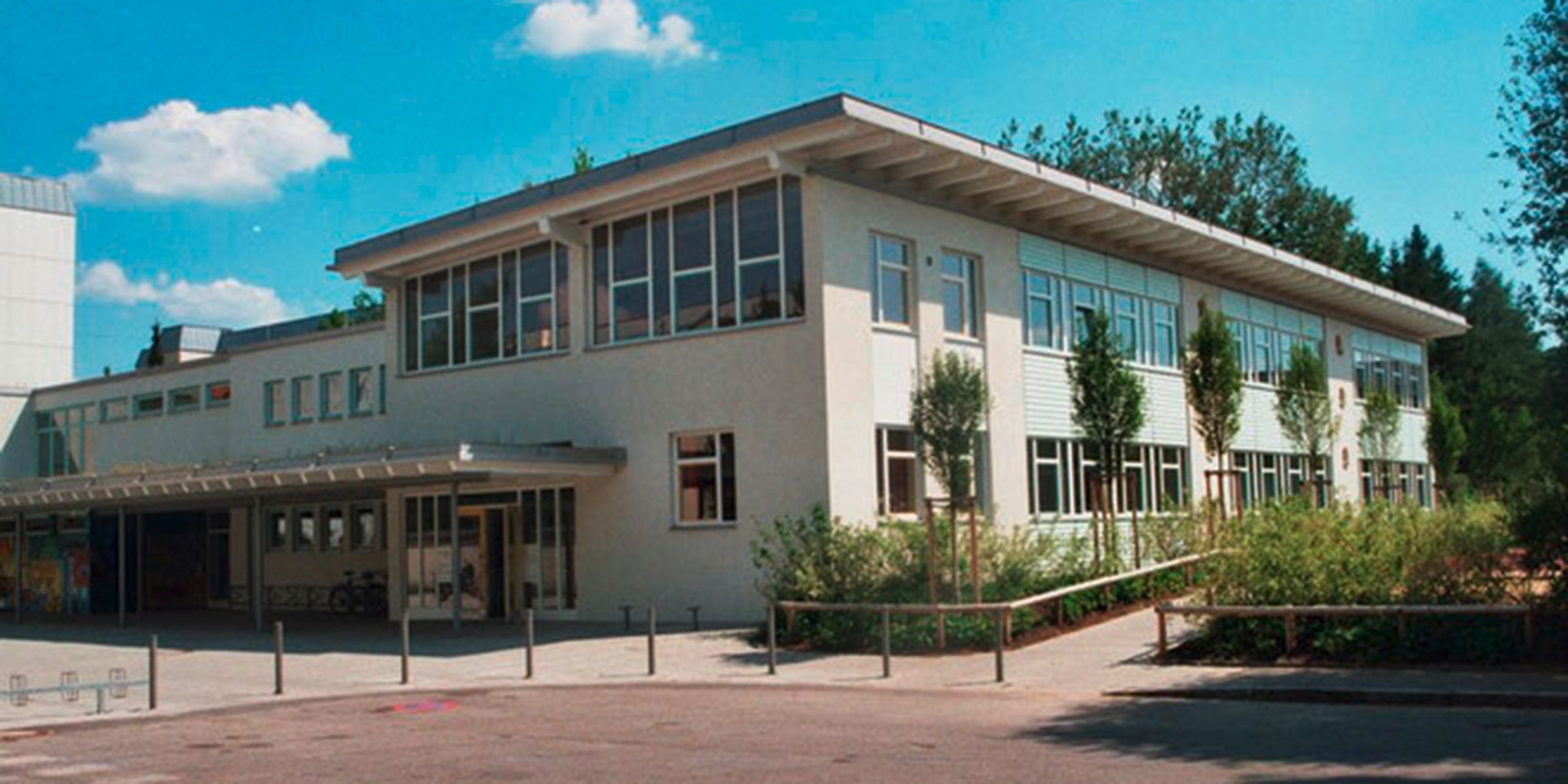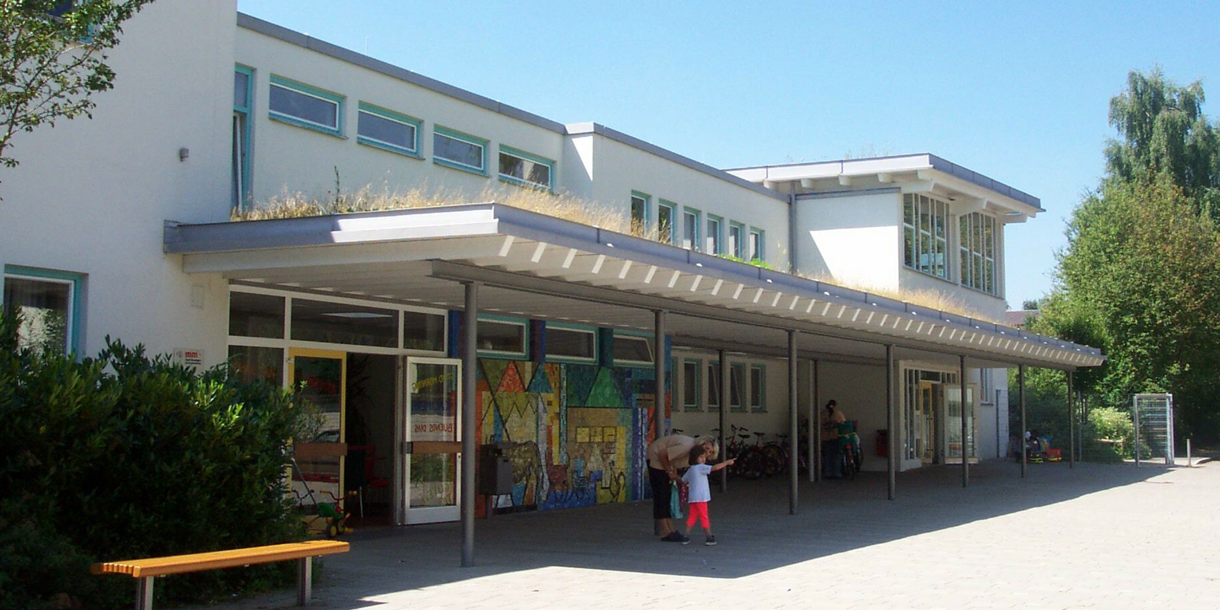 Neubau eines 4-gruppigen Kinderhort mit Mittagsbetreuung und Jugendtreff im Untergeschoss. Massivbau mit punktgestützten Flachdecken auf Stahlrohr-/Stahlbetonstützen und begrüntem Flachdach aus einer Brettschichtholzkonstruktion.