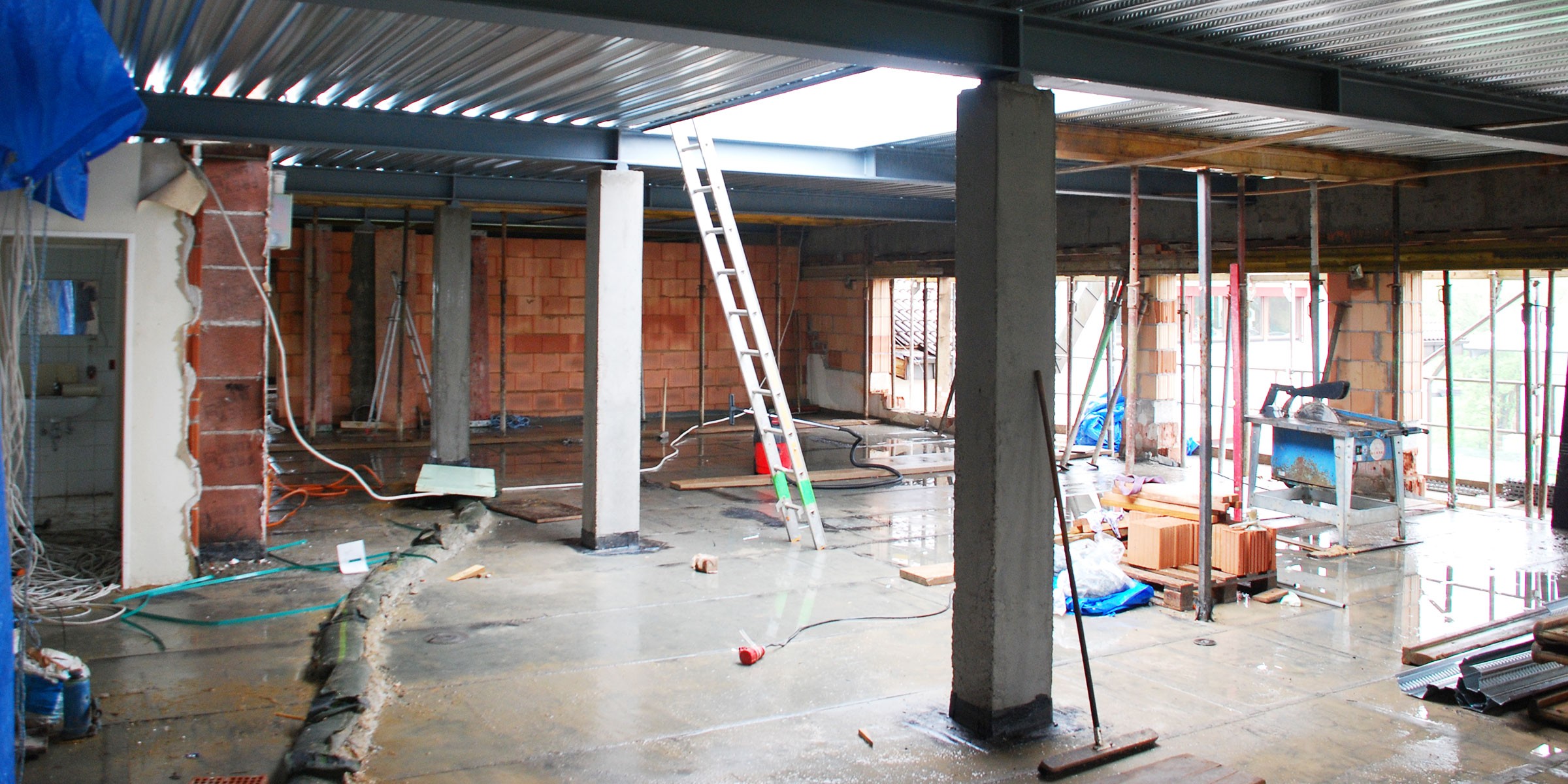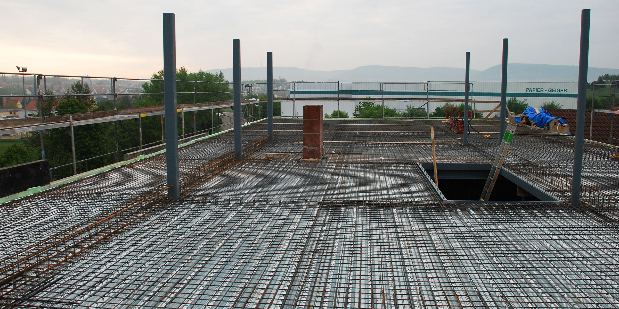 Die Gebäudeaufstockung wurde als leichte Stahlkonstruktion mit Verbunddecken ausgeführt. Durch die gewählte Konstruktion konnten die statischen Eingriffe in das Bestandsgebäude auf ein Minimum reduziert werden.