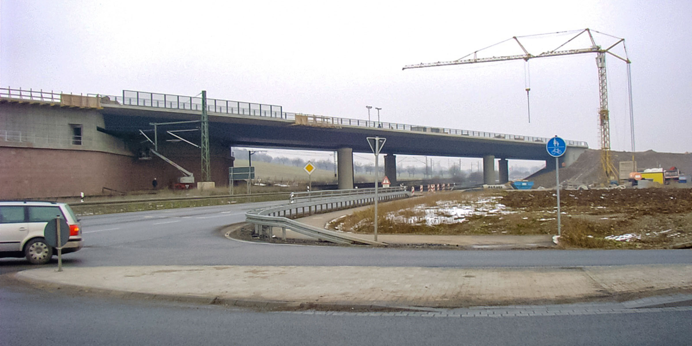 Brücke im Zuge der BAB A38 über B80 und die Bahnlinie Sangerhausen-Eichenberg.
