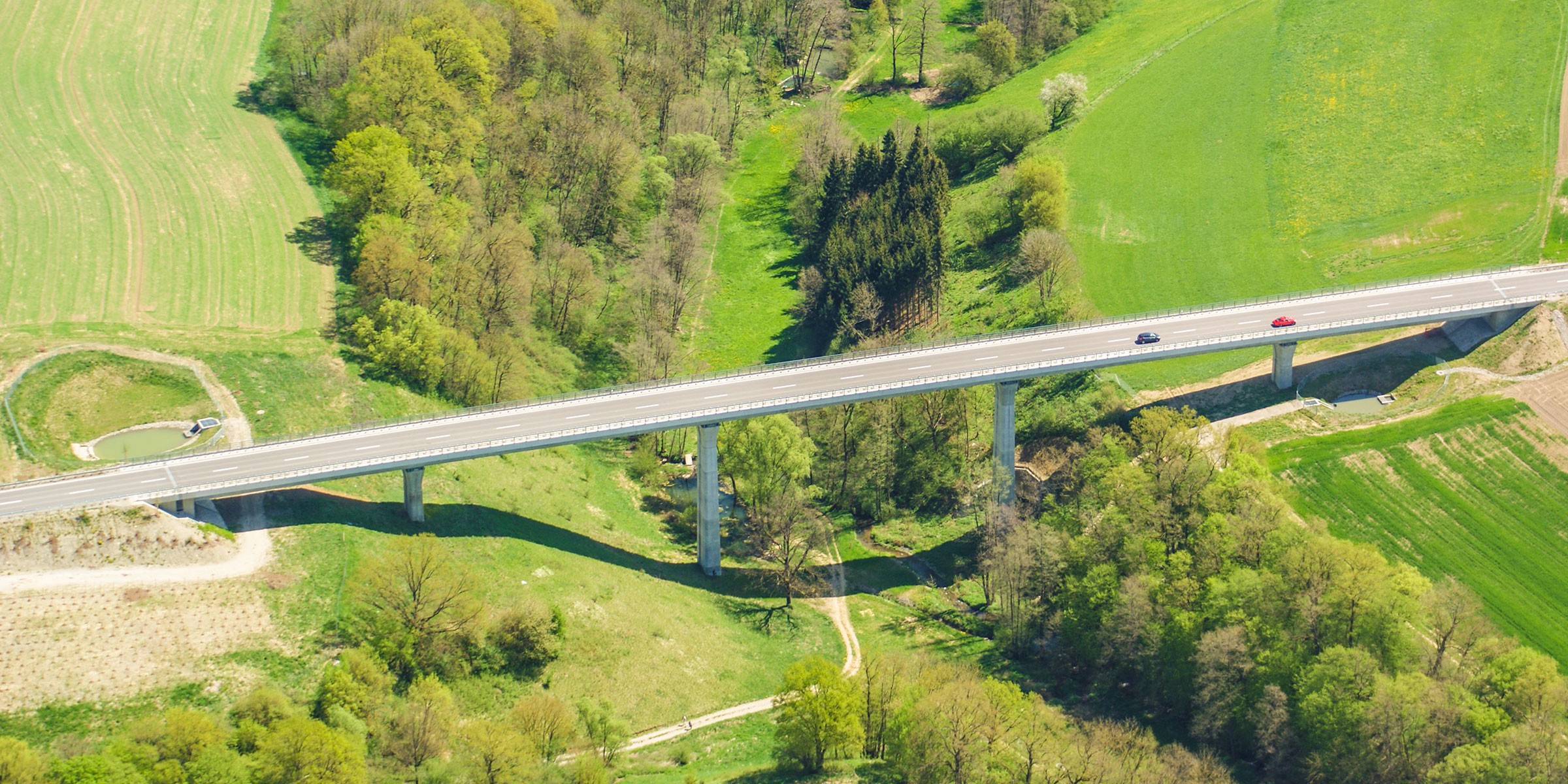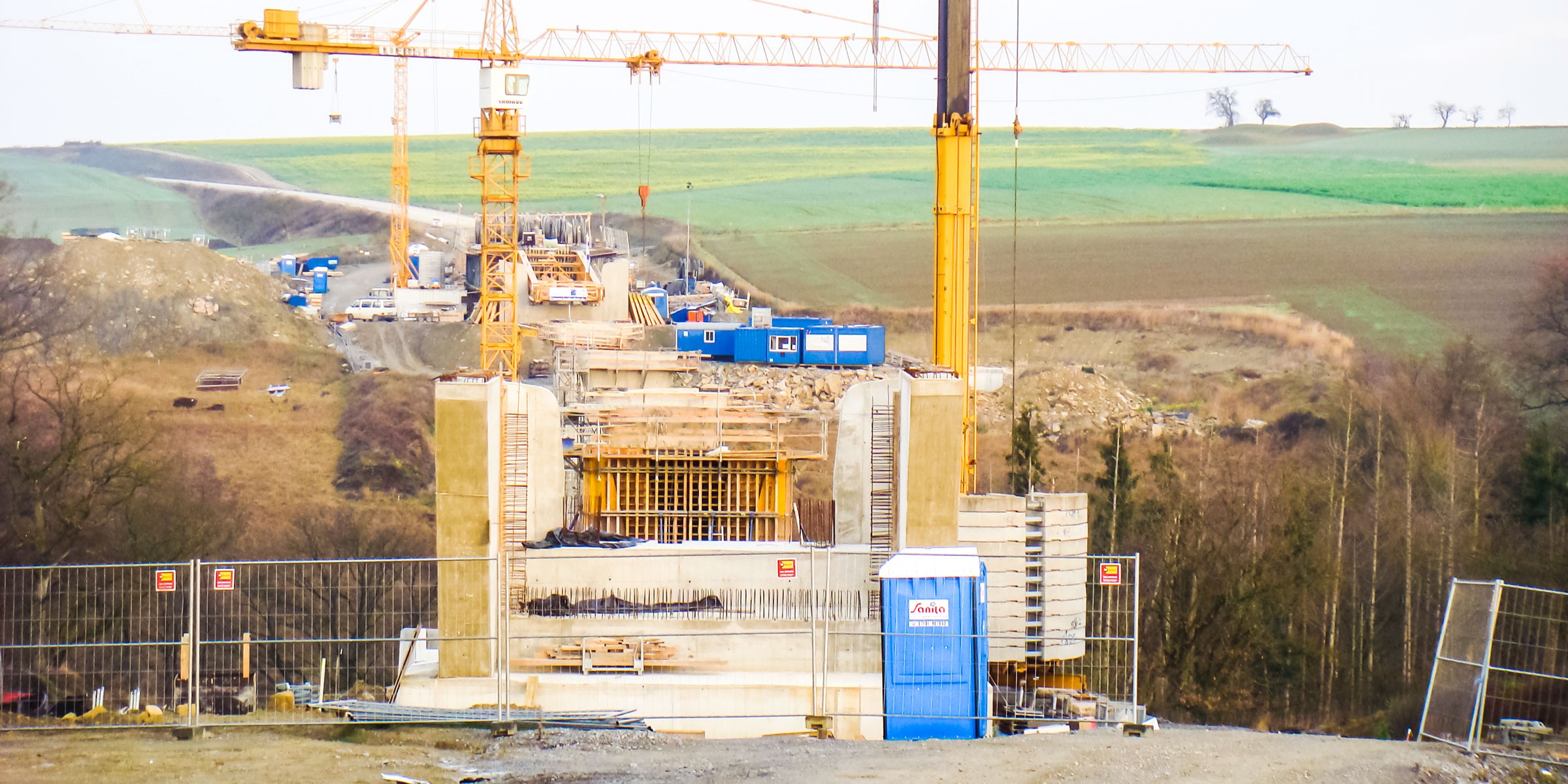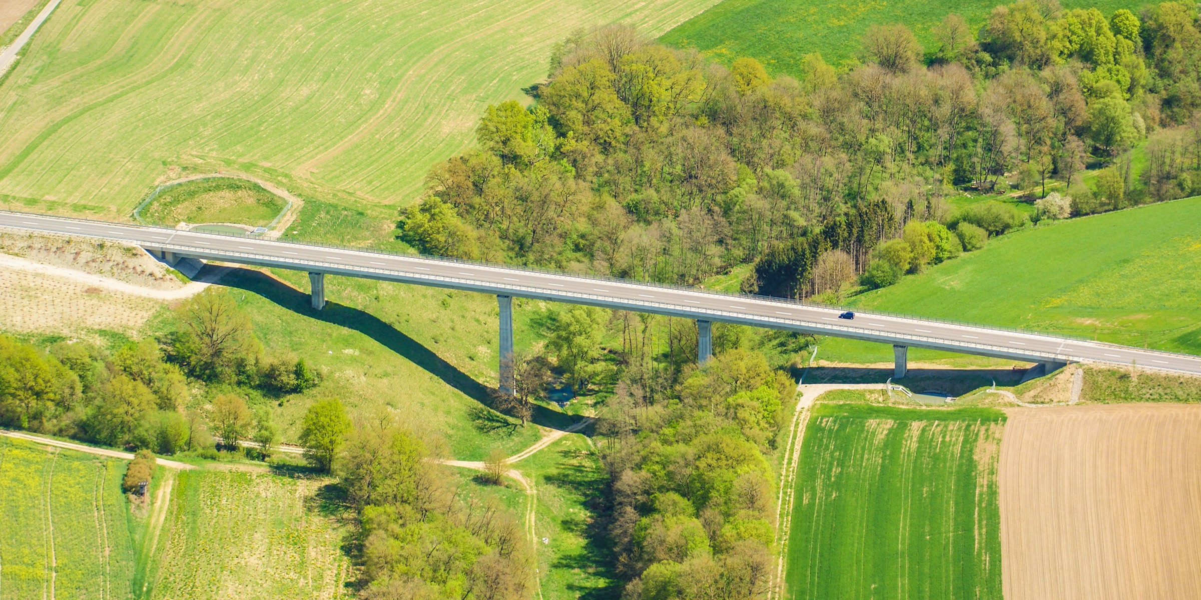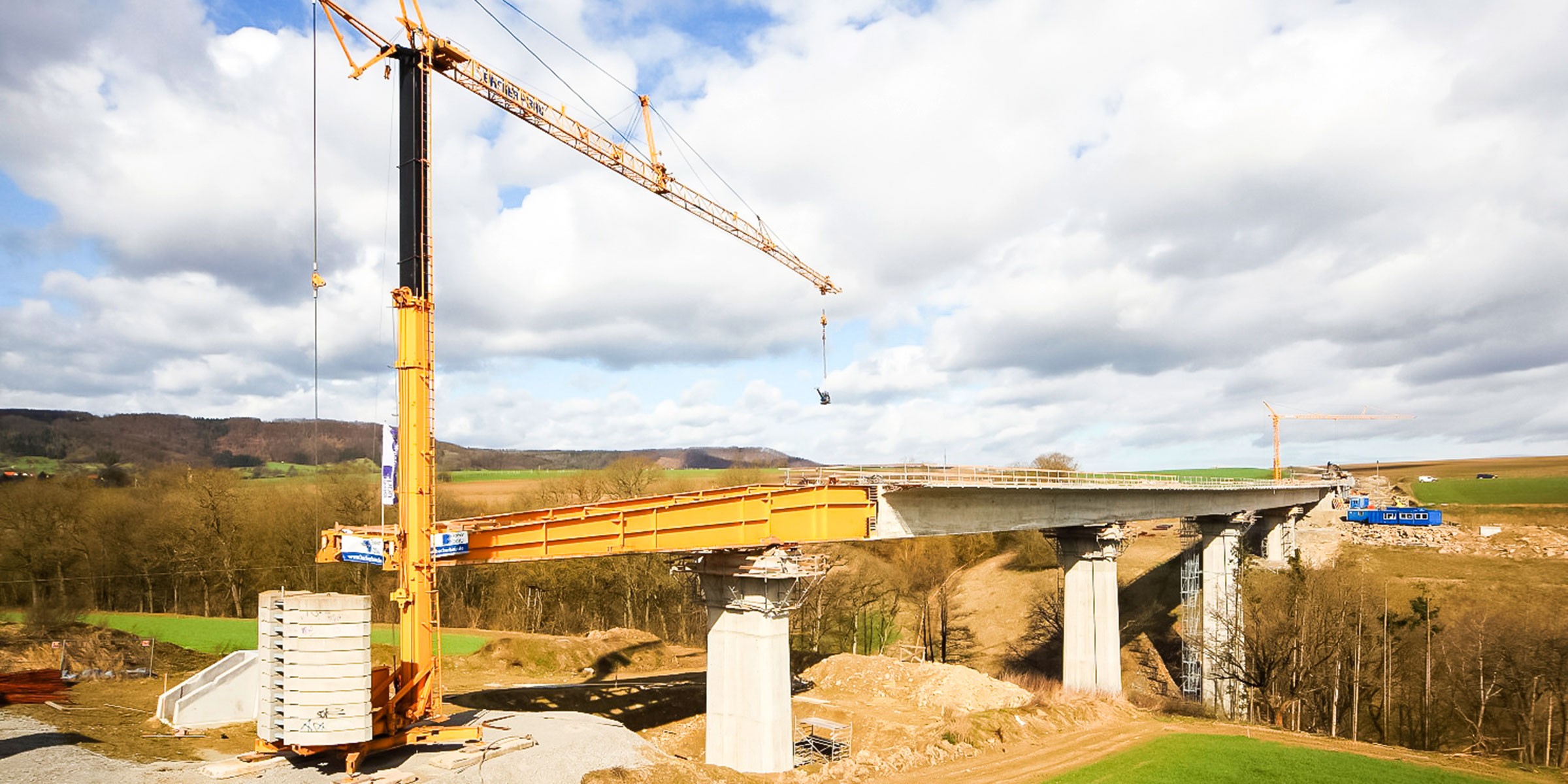 Überführung der K2576 über den Gailenkircher Bach bei Schwäbisch Hall. Hohlkastenbrücke als vorgespannter Durchlaufträger in Mischbauweise. Herstellung im Taktschiebeverfahren mit 9 Einzeltakten.
