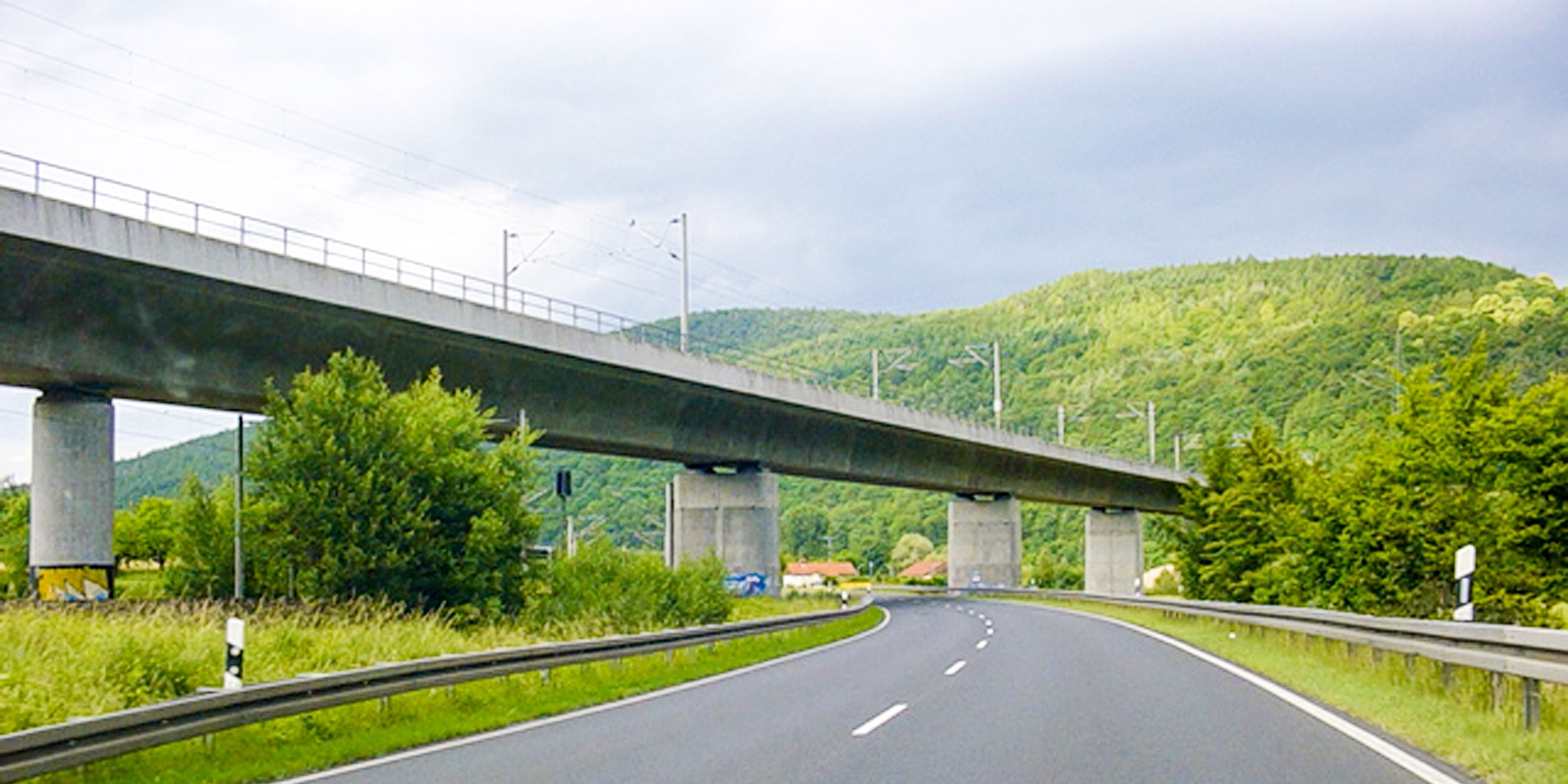 Vorlandbrücke: Hohlkasten als vorgespannter Durchlaufträger mit einer Länge von 317,00m.