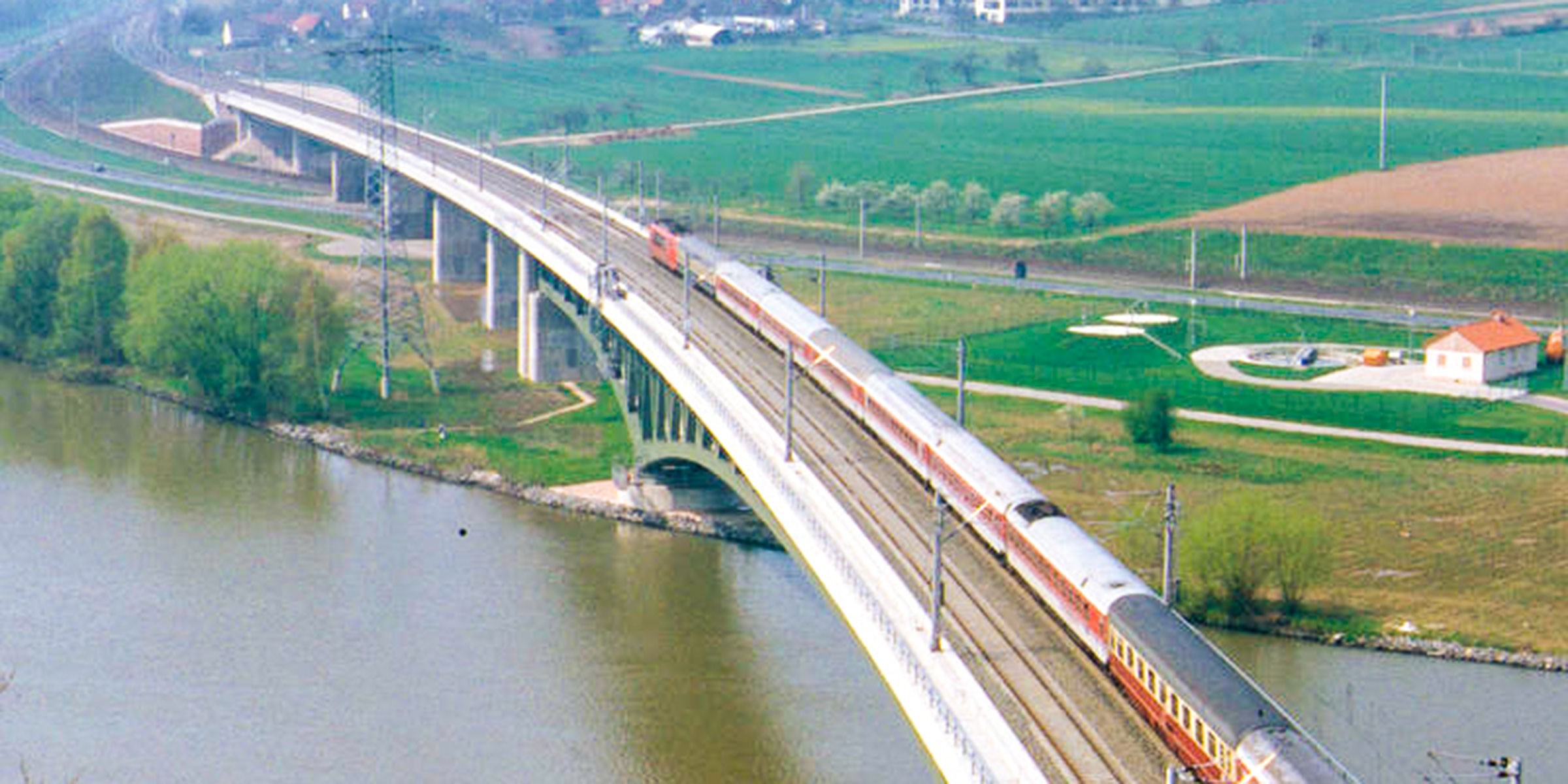 Strombrücke: Doppelverbund-Fachwerk mit Gesamtlänge von 374,40m