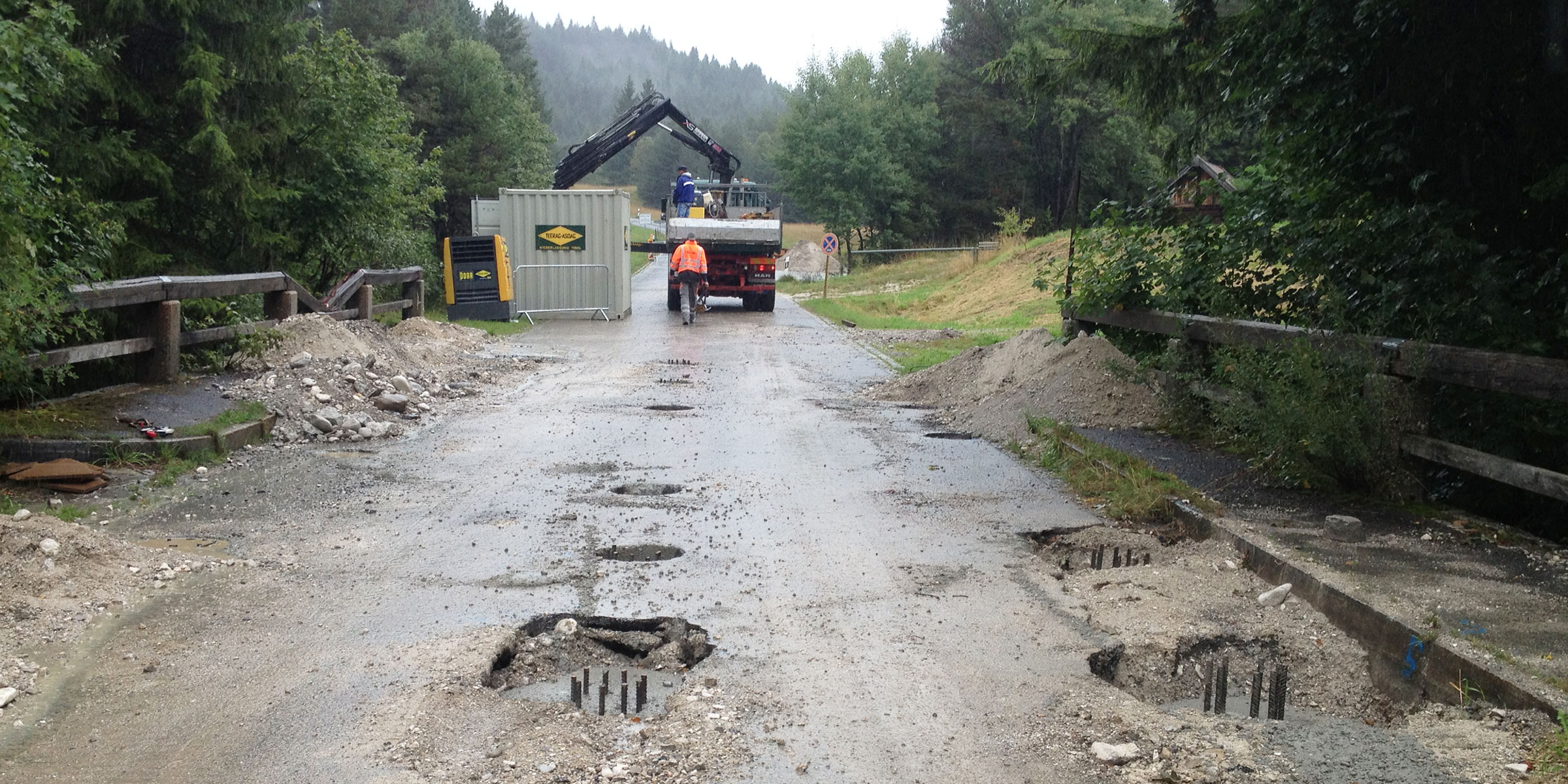 Ertüchtigung des Brückengewölbe über den Ablauf am Luttensee. Instandsetzungsmaßnahmen: Überdeckelung der bestehenden Gewölbebrücke durch eine punktgestützte Fahrbahnplatte auf Bohrpfahlgründung. Instandsetzungsmaßnahmen am Gewölbe.