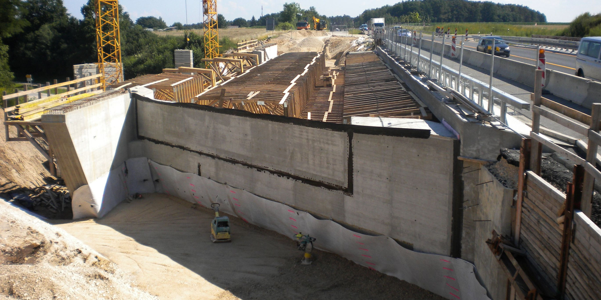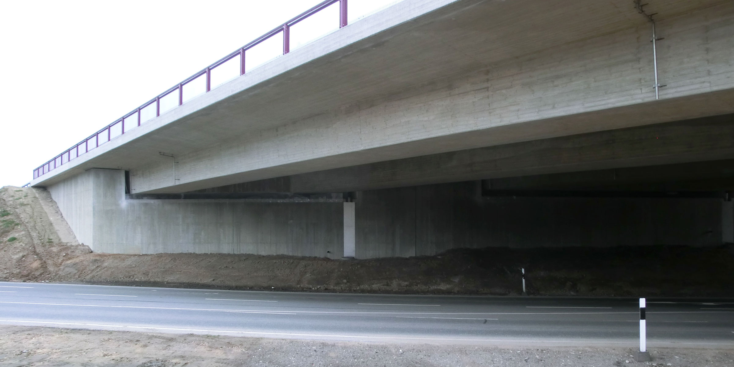 Herstellung in Ortbetonbauweise auf Traggerüst. Zwei getrennte Überbauten.