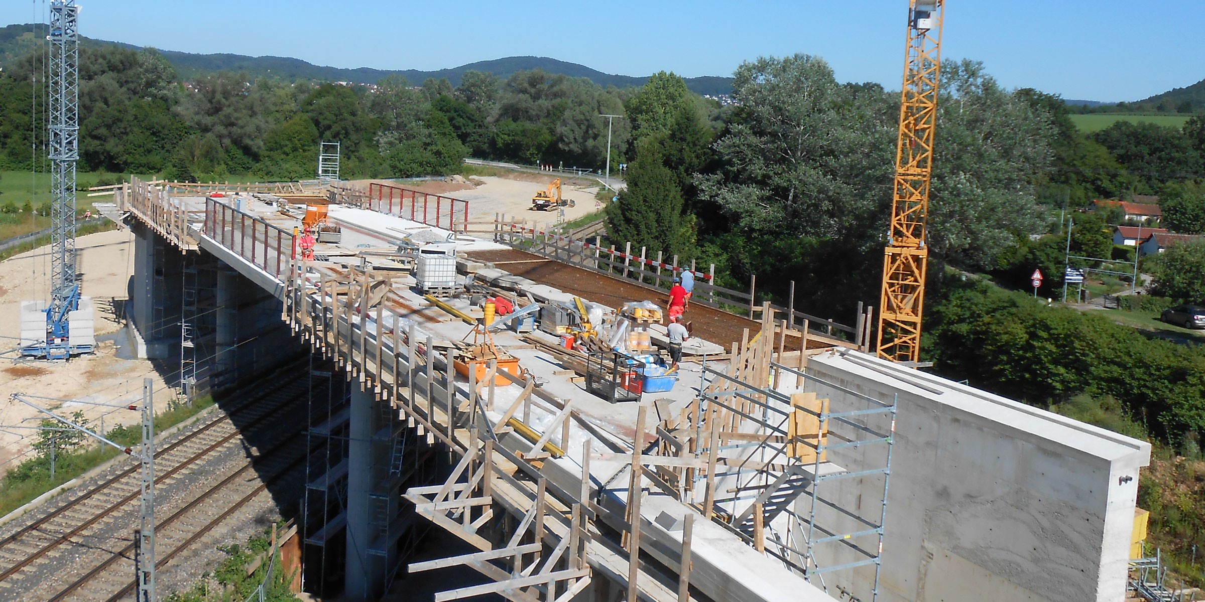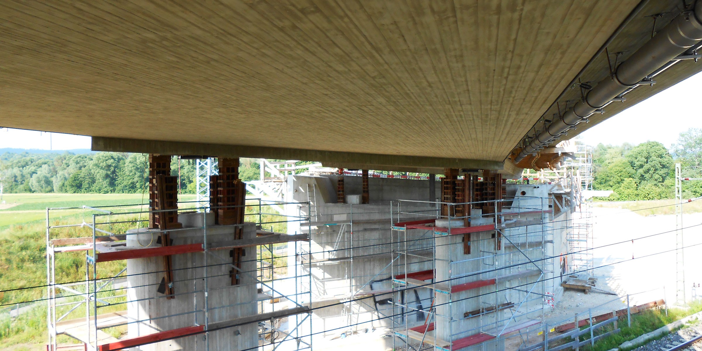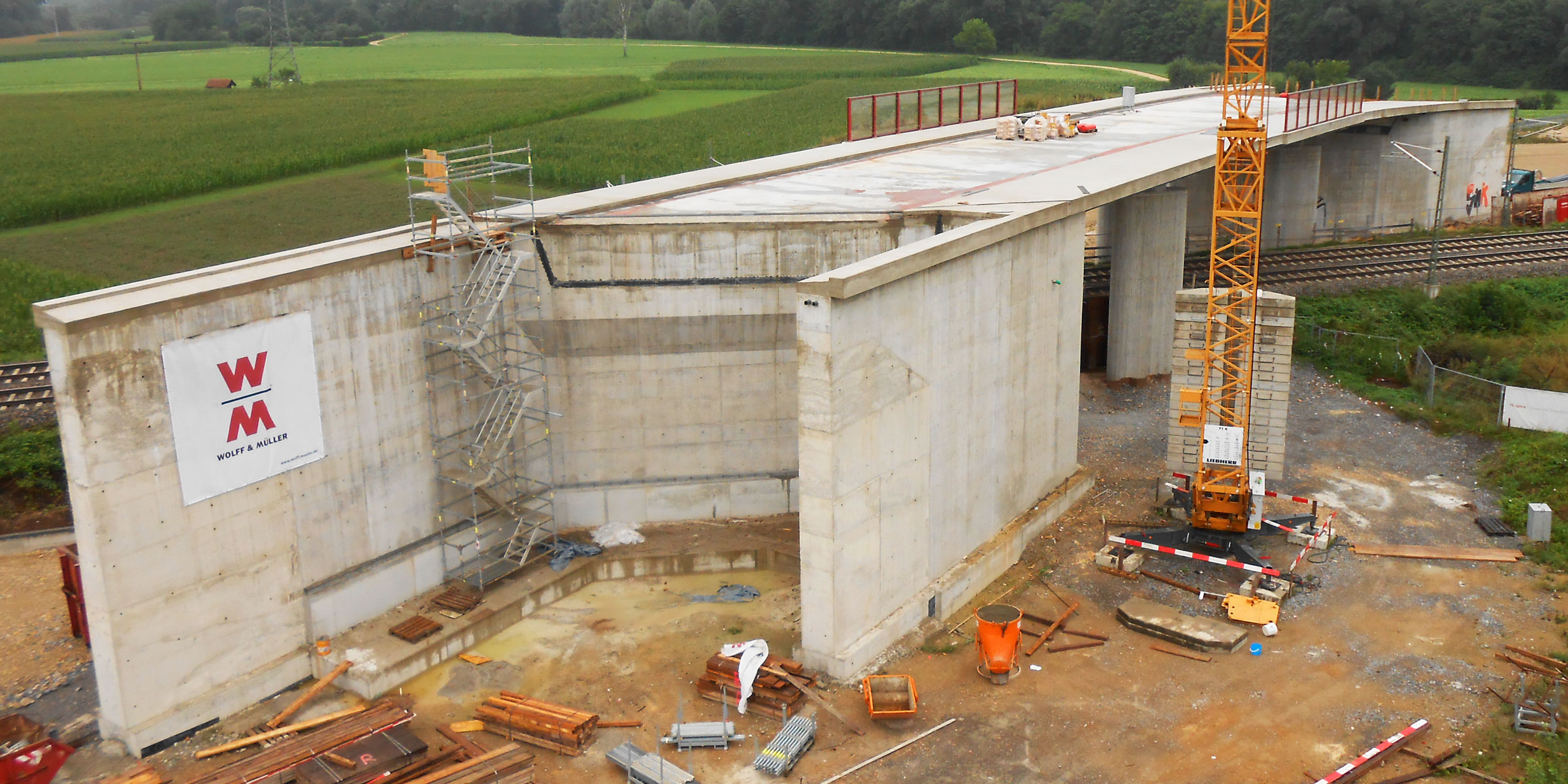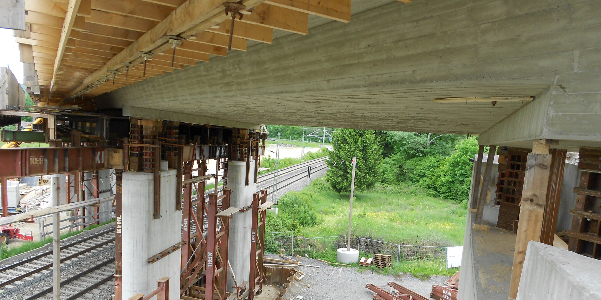 Herstellung in Ortbetonbauweise auf Traggerüst in überhöhter Lage.