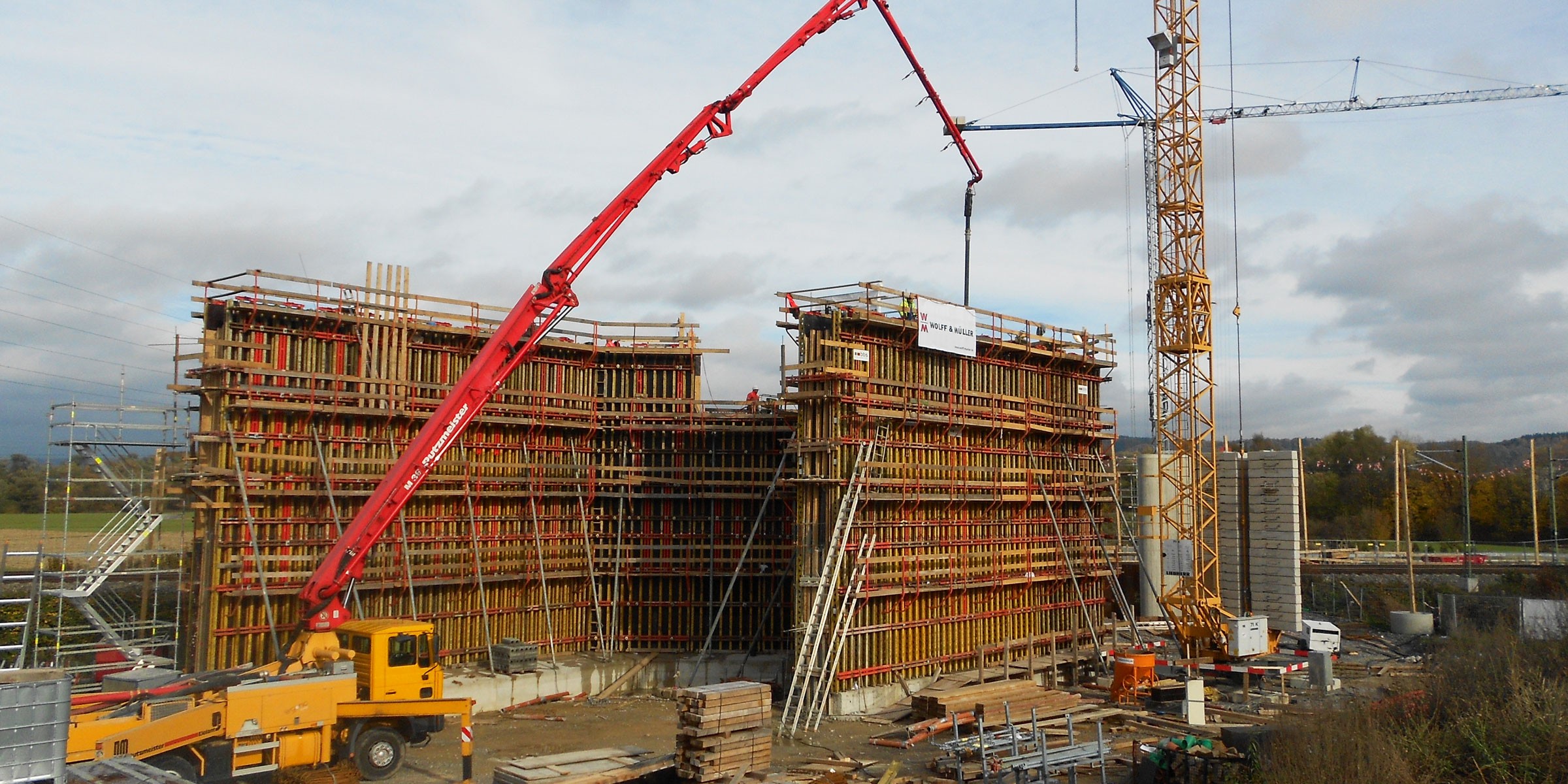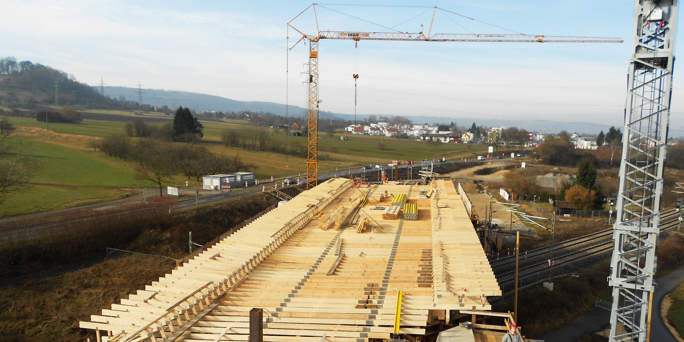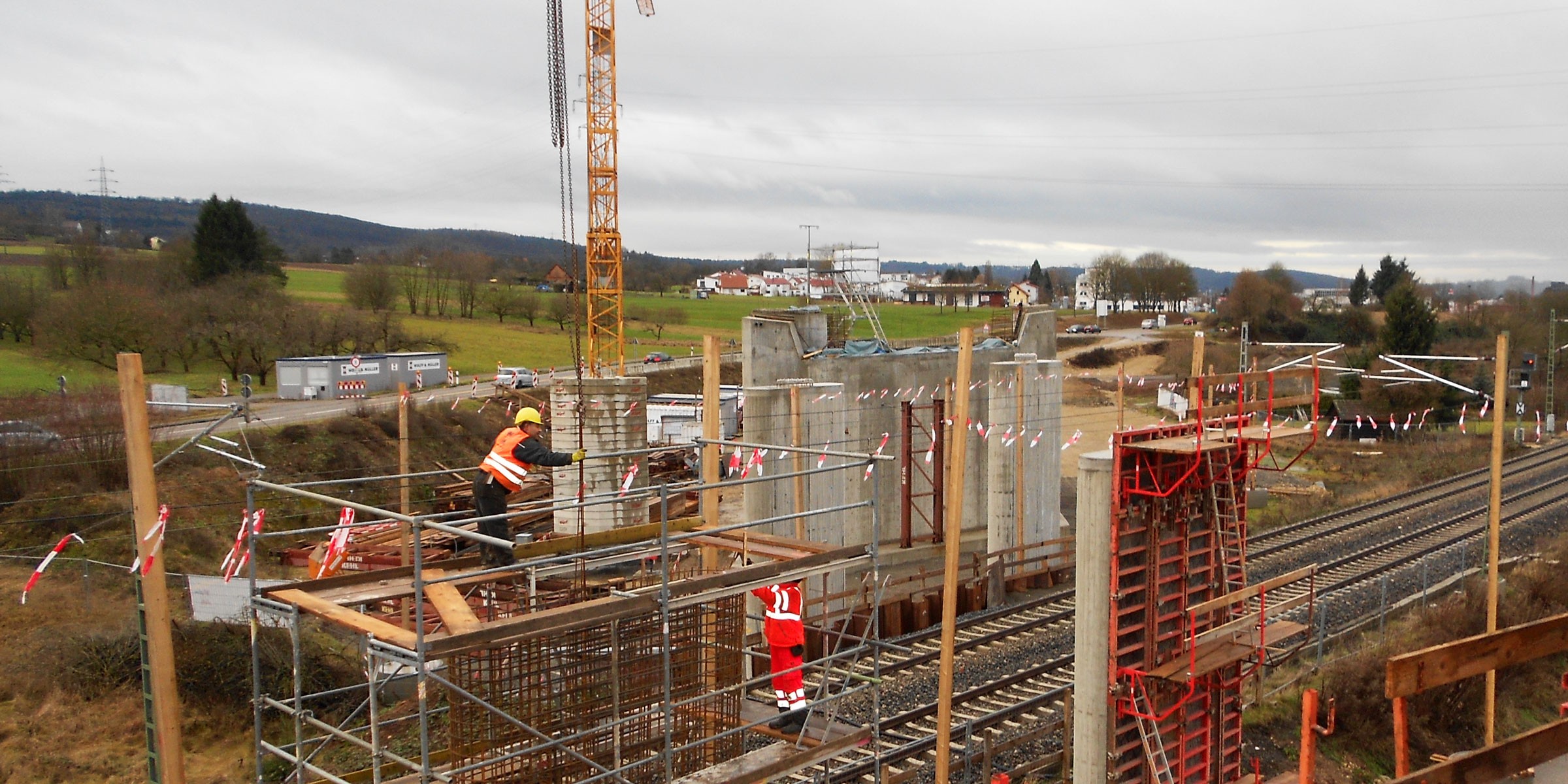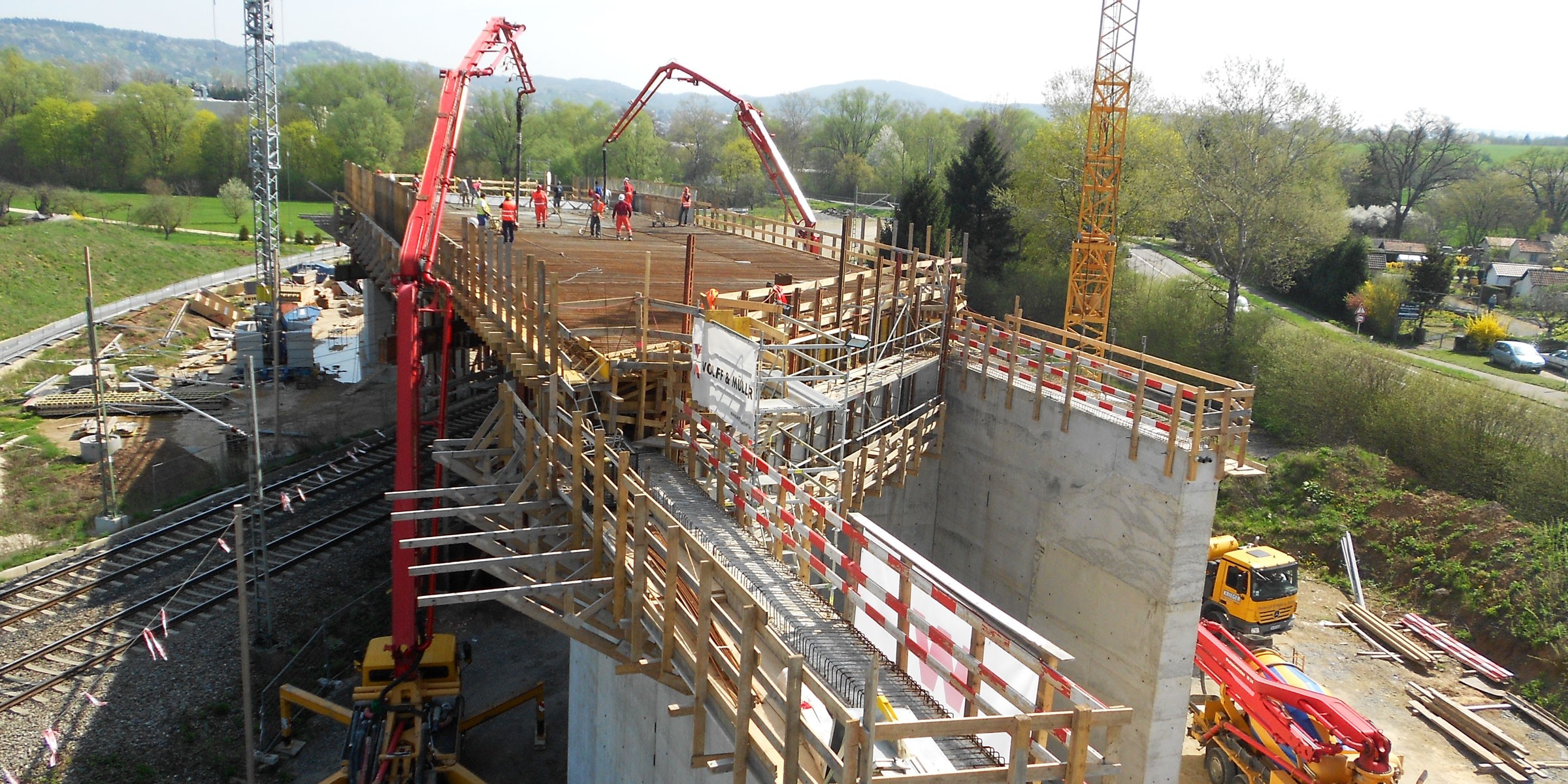 Herstellung in Ortbetonbauweise auf Traggerüst in überhöhter Lage.