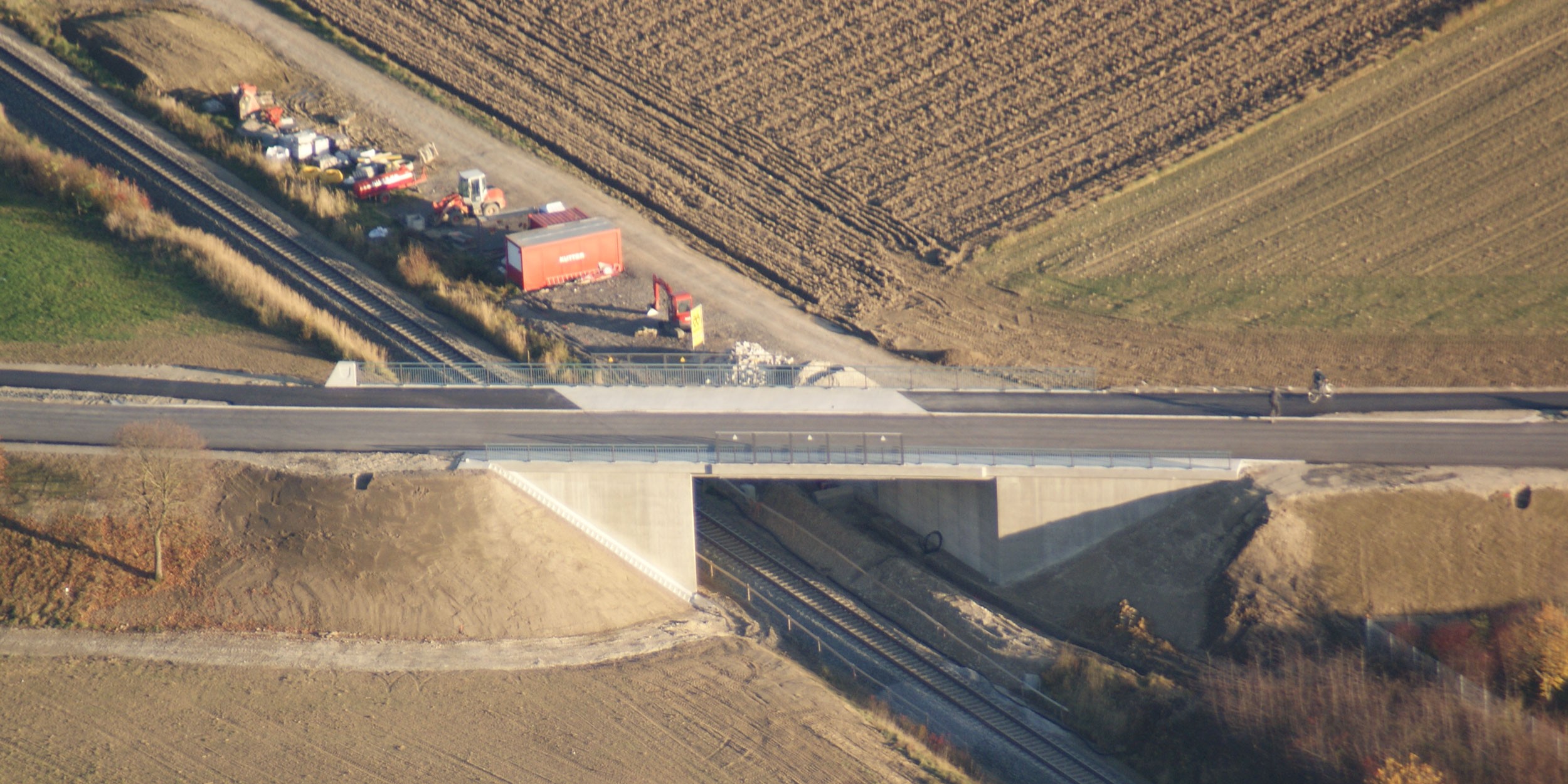 Überführung der MN15 Trunkelsberg - Holzgünz über die Bahnlinie bei Schwaighausen.