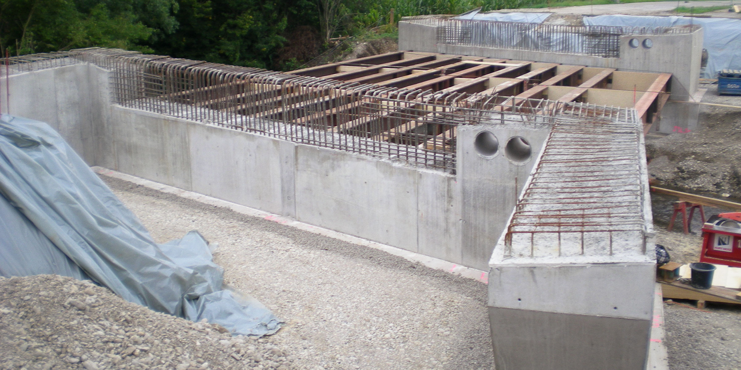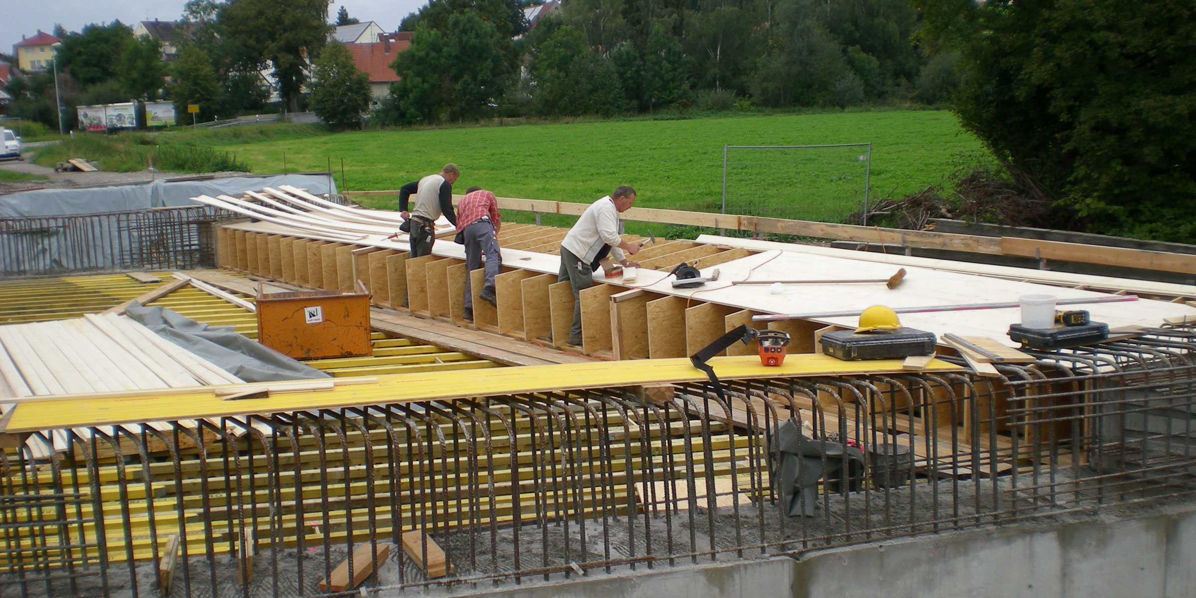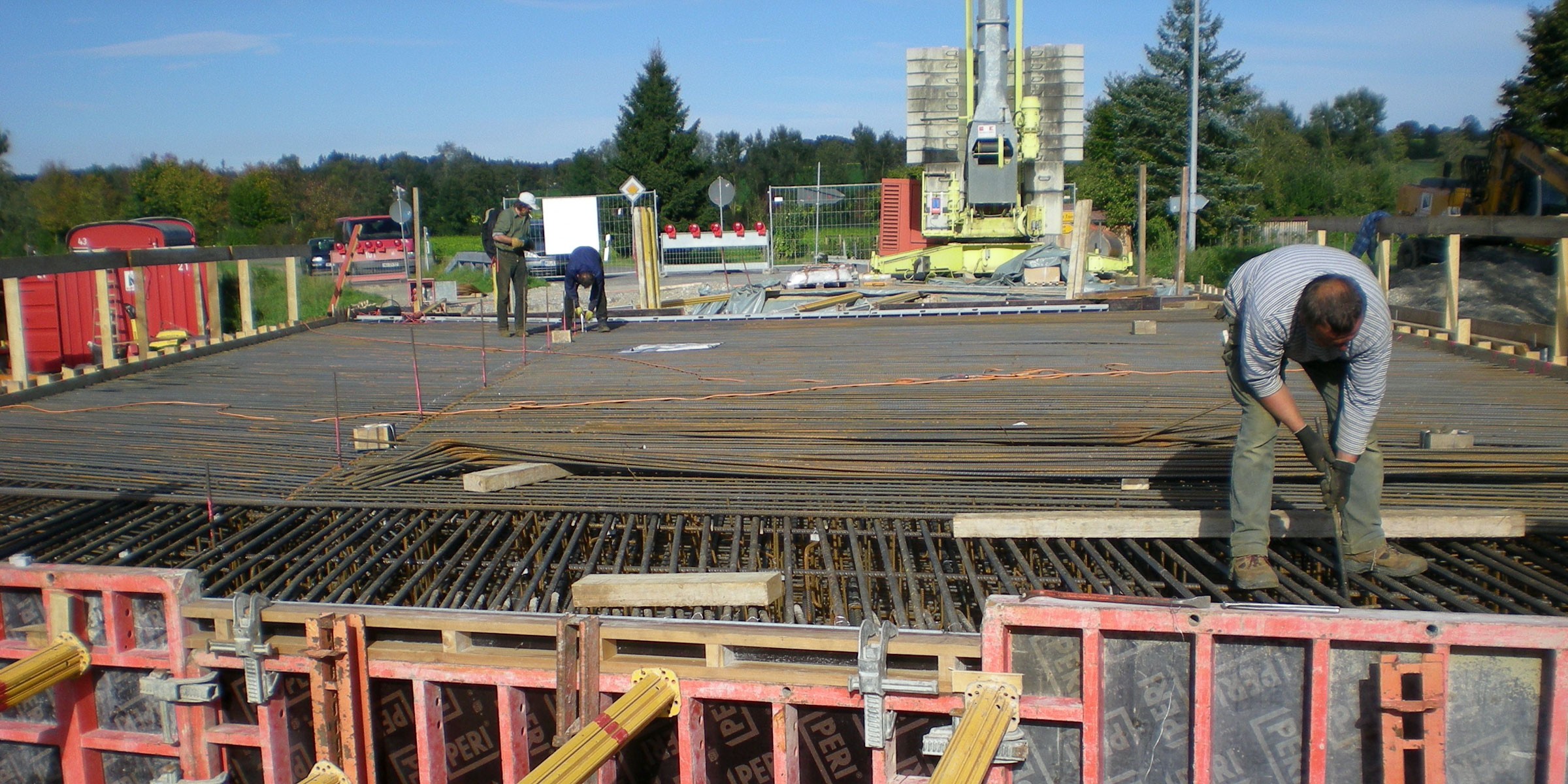 Herstellung in Ortbetonbauweise auf Traggerüst. Gründung auf Bohrpfählen.