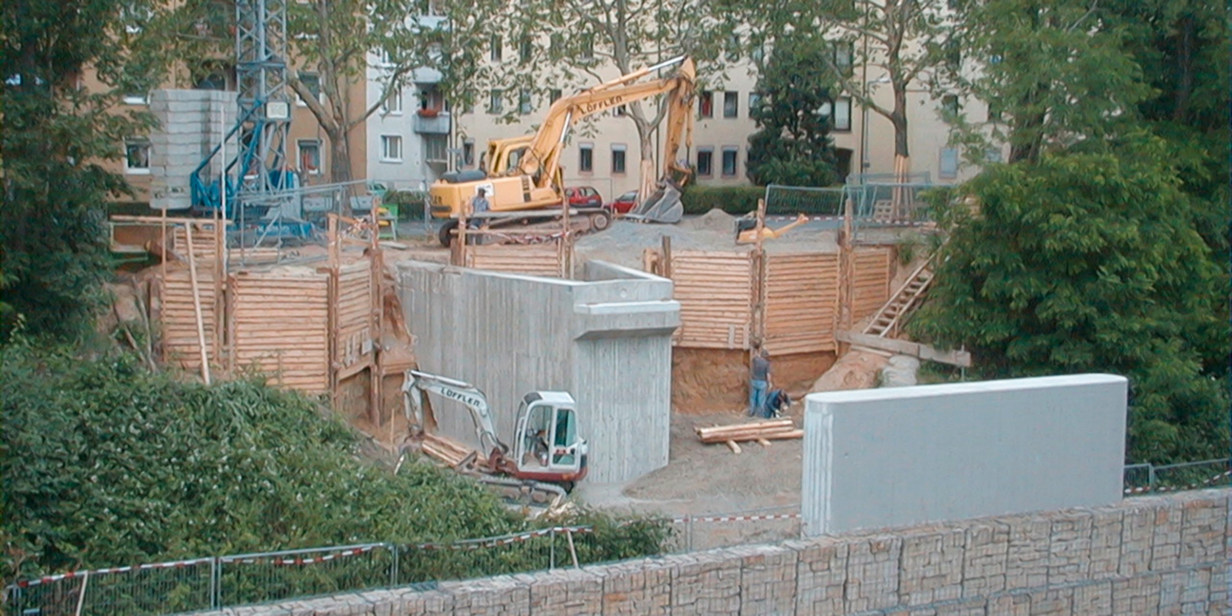 Einfeldtragwerke als Fachwerkträger mit Stahlhohlprofilen. Bodenplatte und Seiten- Wände mit Verkleidung aus Trapezblechen. Gründung auf Spundwänden (Schneidelagerung).
